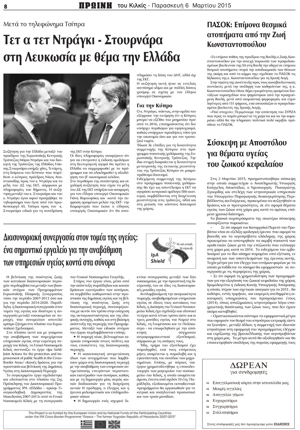 Άρθρο για το έργο στην εφημερίδα Πρωινή στις 06.03.2015