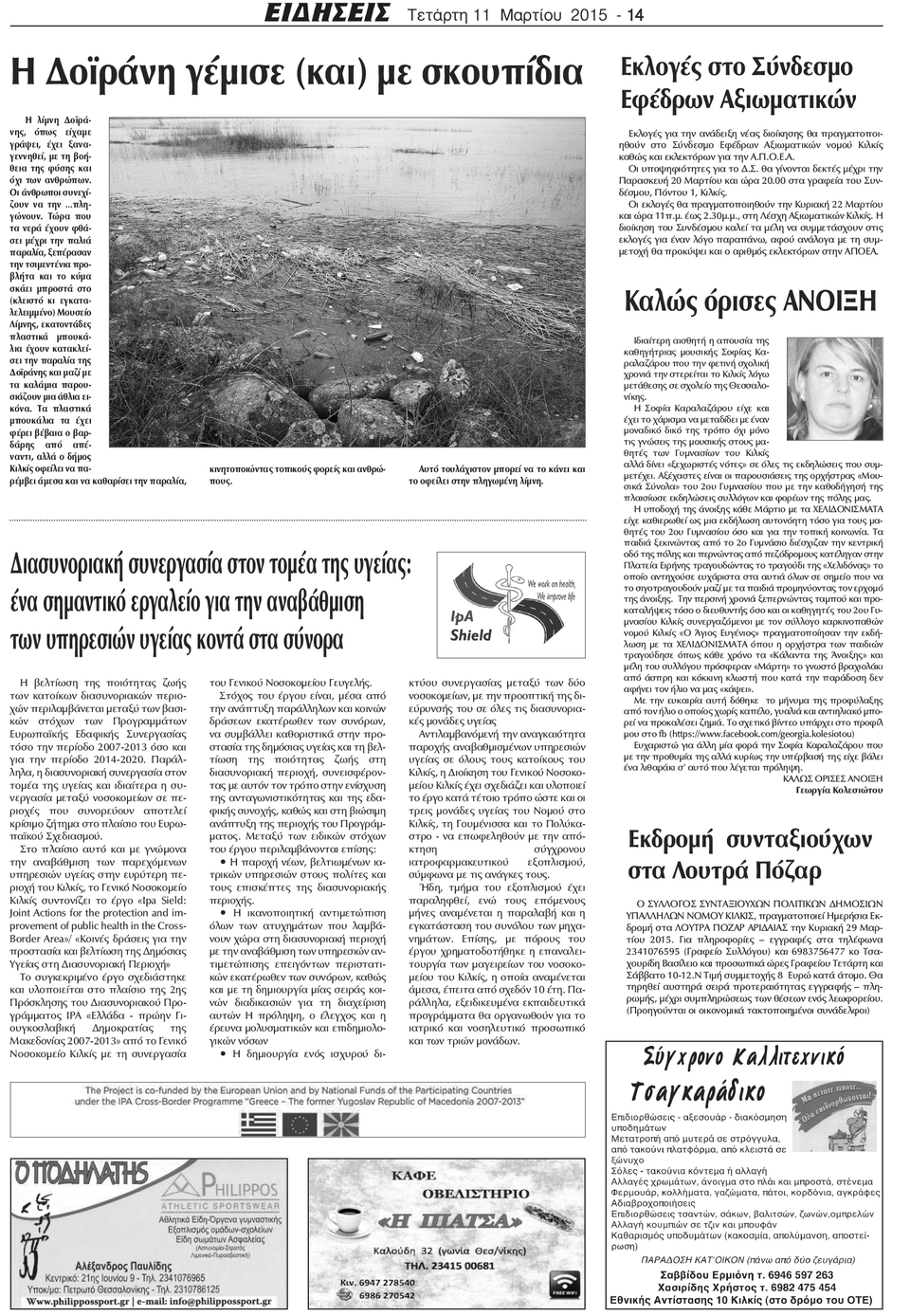 Άρθρο για το έργο στην εφημερίδα Ειδήσεις στις 18.03.2015